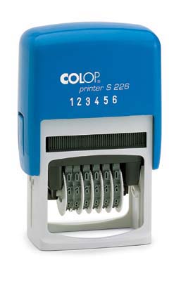 Numerator 6 cyfrowy. Opływowy kształt oraz budowa sprawiają iż automaty te są mniejsze i poręczniejsze od innych oferowanych na rynku. Doskonale zaprojektowana rączka gwarantuje wygodna i lekką pracę automatem. Okno kartki indeksującej pozwala na zamieszczenie na niej całej treści odbicia. Obudowa automatu wyposażona jest w stopki antypoślizogowe, które przeciwdziałają przesuwaniu się automatu podczas stemplowania. Do wszystkich modeli potrzebna tylko jedna wielkość poduszki zastępczej.